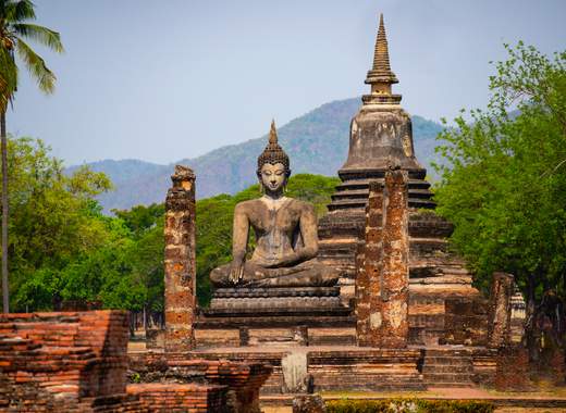 À tarde, a aventura continua em Lopburi, uma das cidades mais antigas da Tailândia, onde o encantador Templo dos Macacos (Prang Sam Yod) espera por si. Com a sua arquitetura khmer do século XIII, este lugar é único devido aos seus habitantes brincalhões: uma multidão de macacos que o receberão de uma maneira muito especial. Finalizaremos a nossa viagem em Phitsanuloke, um paraíso para os amantes da natureza e da beleza serena. Desfrute de um almoço requintado num restaurante local e termine o seu dia com uma noite de descanso num hotel selecionado para o seu conforto.